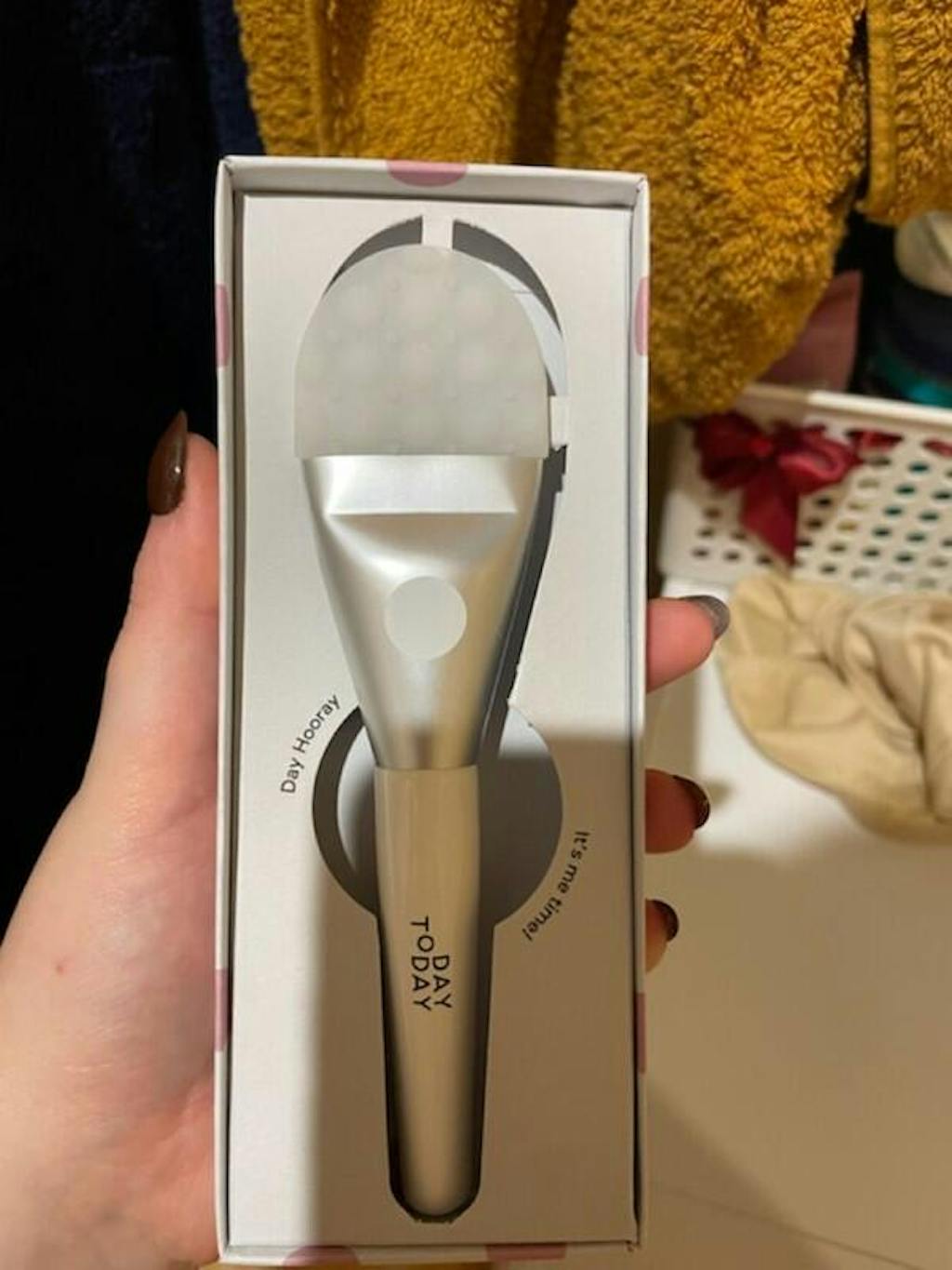 Švelni silikoninio antgalio tekstūra nedirgina jautrios odos. Lygioji pusė puikiai tinka įvairių tipų kaukėms tepti. Kita pusė išsiskiria jos paviršiuje esančiais kauliukais, kuriais galima švelniai masažuoti veidą. Nuo šiol kaukės naudojimas yra paprastas, tvarkingas, greitas ir malonus. Silikoną lengva valyti, todėl "Day Hooray" kaukės dengimo šepetėlį galima naudoti higieniškai ir pakartotinai.